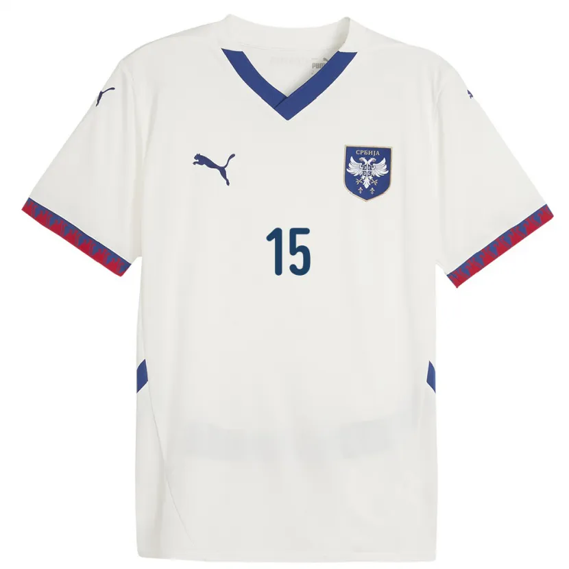 Danxen Męski Serbia Srdjan Babic #15 Biały Wyjazdowa Koszulka 24-26 Koszulki Klubowe